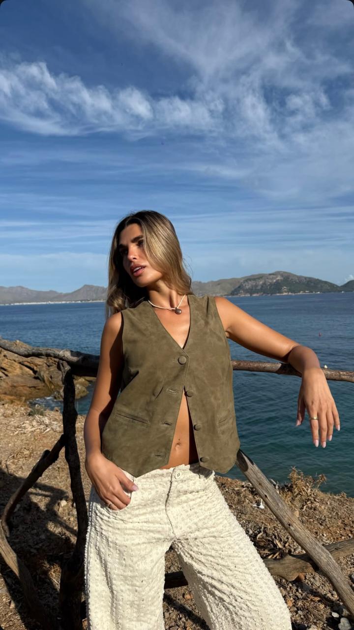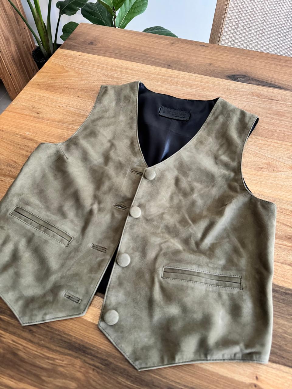 Chaleco de cuero gamuza. Disponible en varios colores.